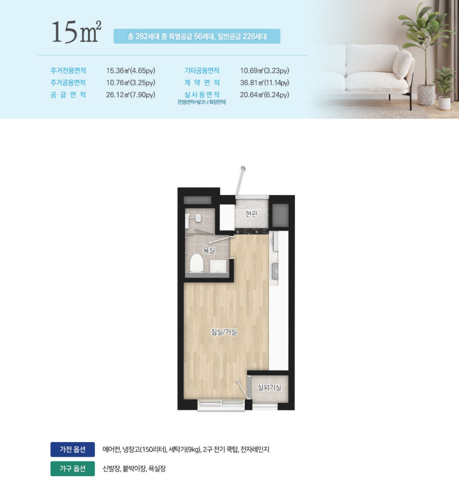 - 15형(주거 전용 15.36m² / 약 4.65평)
